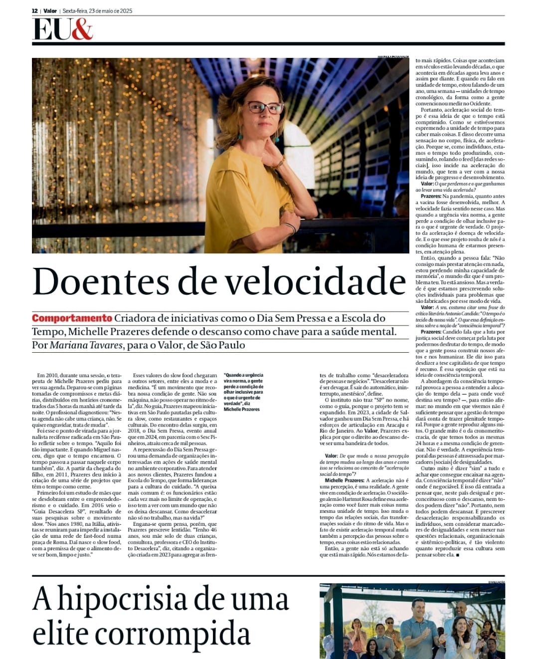 Estamos doentes de velocidade: entrevista ao jornal Valor Econômico